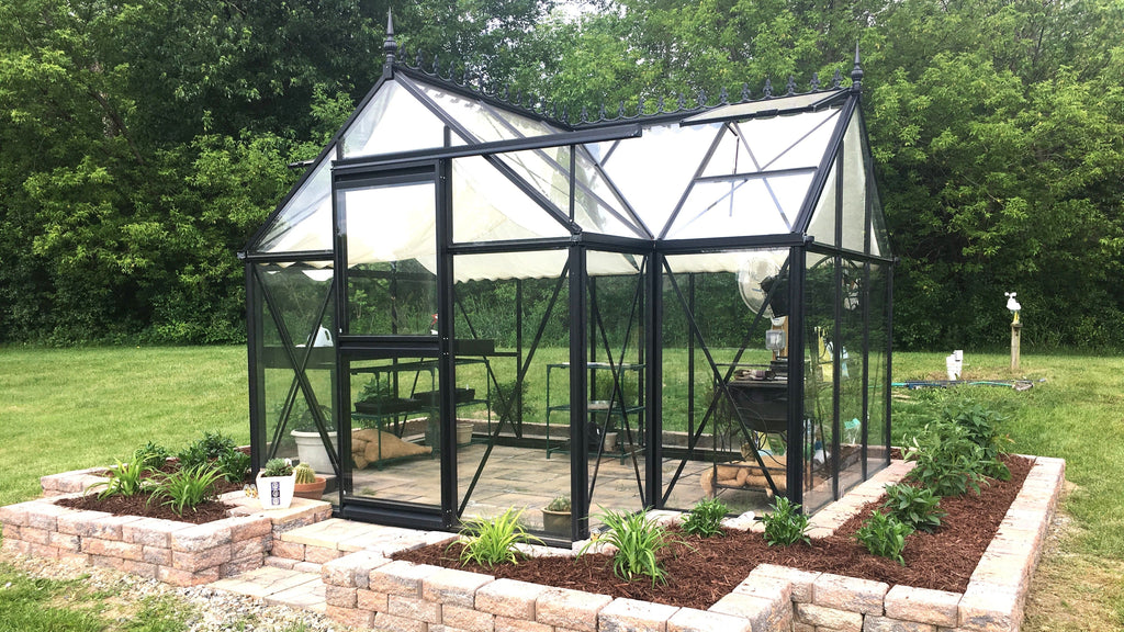 The Junior Orangerie is the most unusual and most appealing greenhouse on the market today. The elegant black framework, Old World Style, and European engineering combined with 5’ side walls and 8’ 2’ peak height give the gardener a comfortable 114 square feet of interior workspace.